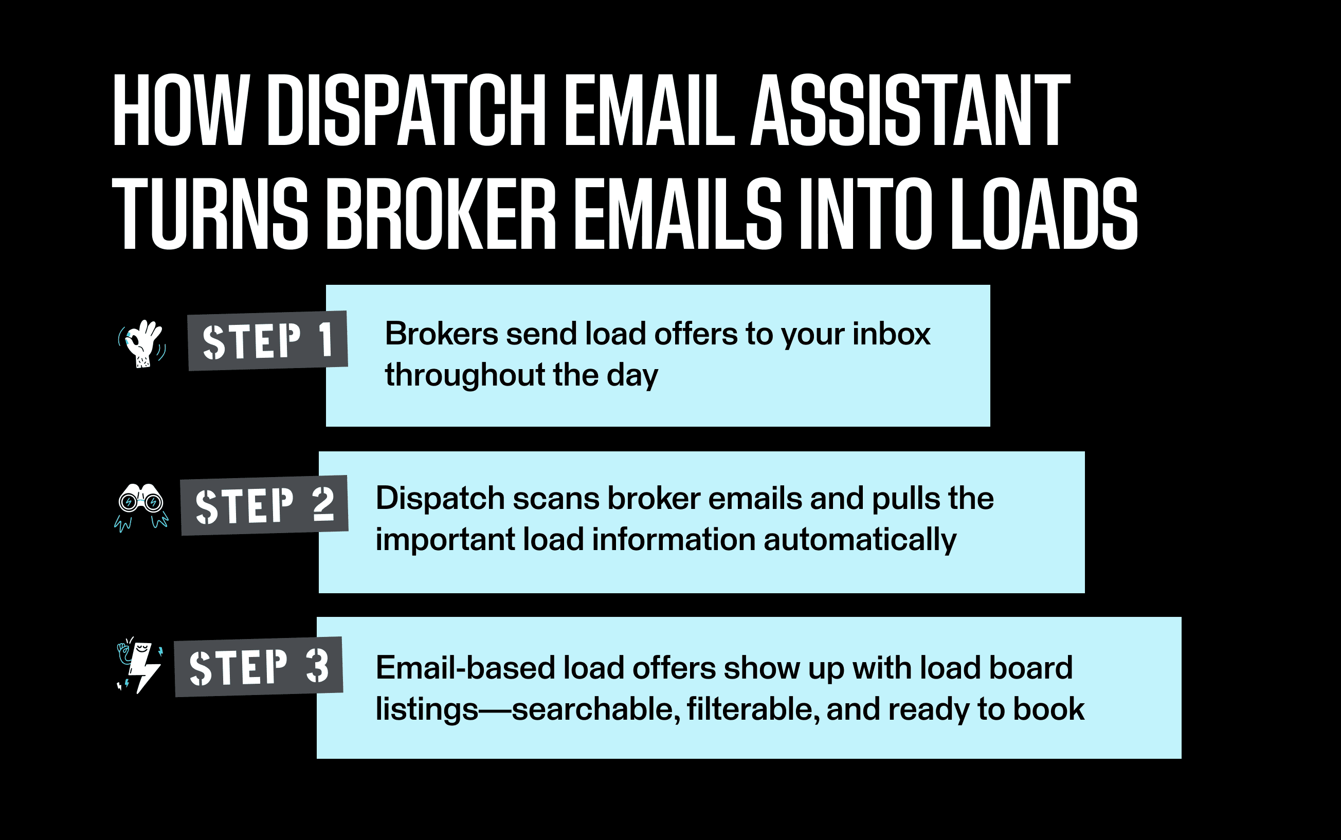 Broker load emails come in all day. Figuring out which ones are actual load opportunities (versus questions, updates, or spam) takes time away from the road.